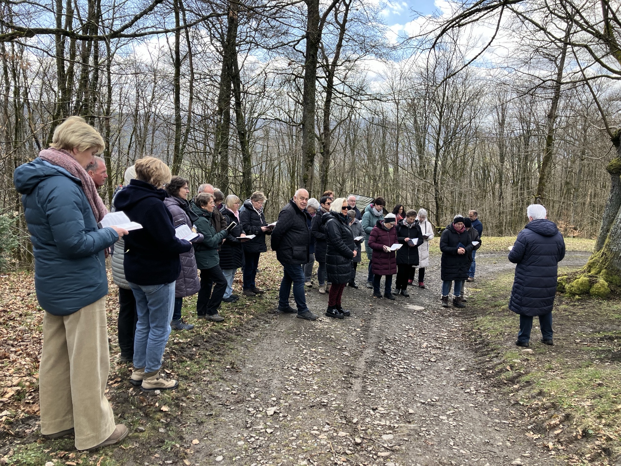 Am Palmsonntag, dem 29. März, machten sich bei strahlendem Frühlingswetter rund 35 Teilnehmerinnen und Teilnehmer auf den Weg zum Wilzenberg, um gemeinsam den Kreuzweg des pastoralen Bereichs zu gehen.