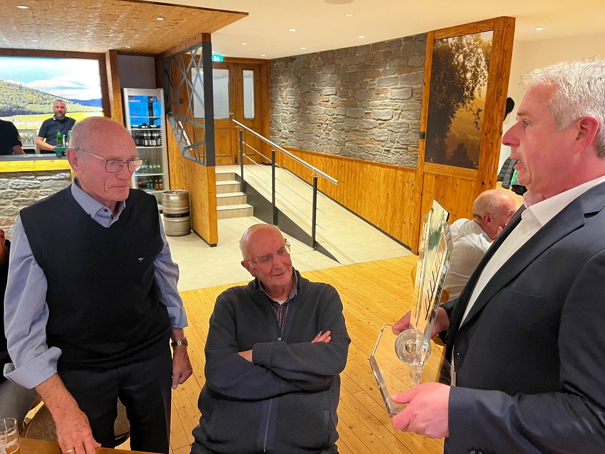 Heribert Schütte wurden unter großem Jubel der Versammlung und anhaltendem Applaus zum Sportler des Jahres ernannt. Unser langjähriger erster Vorsitzender hat sich große Verdienste um die DJK erworben, was Benedikt Brand in seiner Laudatio würdigte. Heribert reflektierte in seiner kurzen Danksagung vor allem die Mühen des Sportheim-Baus in den 70er Jahren. Sieben Mitglieder wurden für ihre 50-jährige Treue zur DJK als Ehrenmitglieder ernannt. Immerhin drei Mitglieder sind seit 40 Jahren dabei.