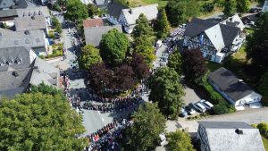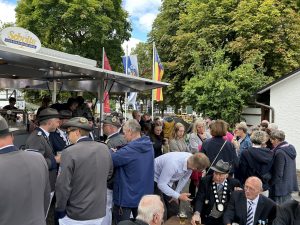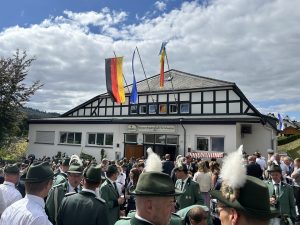 Das Jubiläumsschützenfest zum 200-jährigen Bestehen der St. Sebastian Schützenbruderschaft Grafschaft begann am Samstag, 23.08.2025 mit dem Antreten der Schützen in der Schützenhalle. Der Zug führte zunächst zum Ehrenmal, wo nach einem vom Musikverein Berghausen vorgetragenen Choral die Ansprache des Hauptmanns und die Kranzniederlegung erfolgte.
