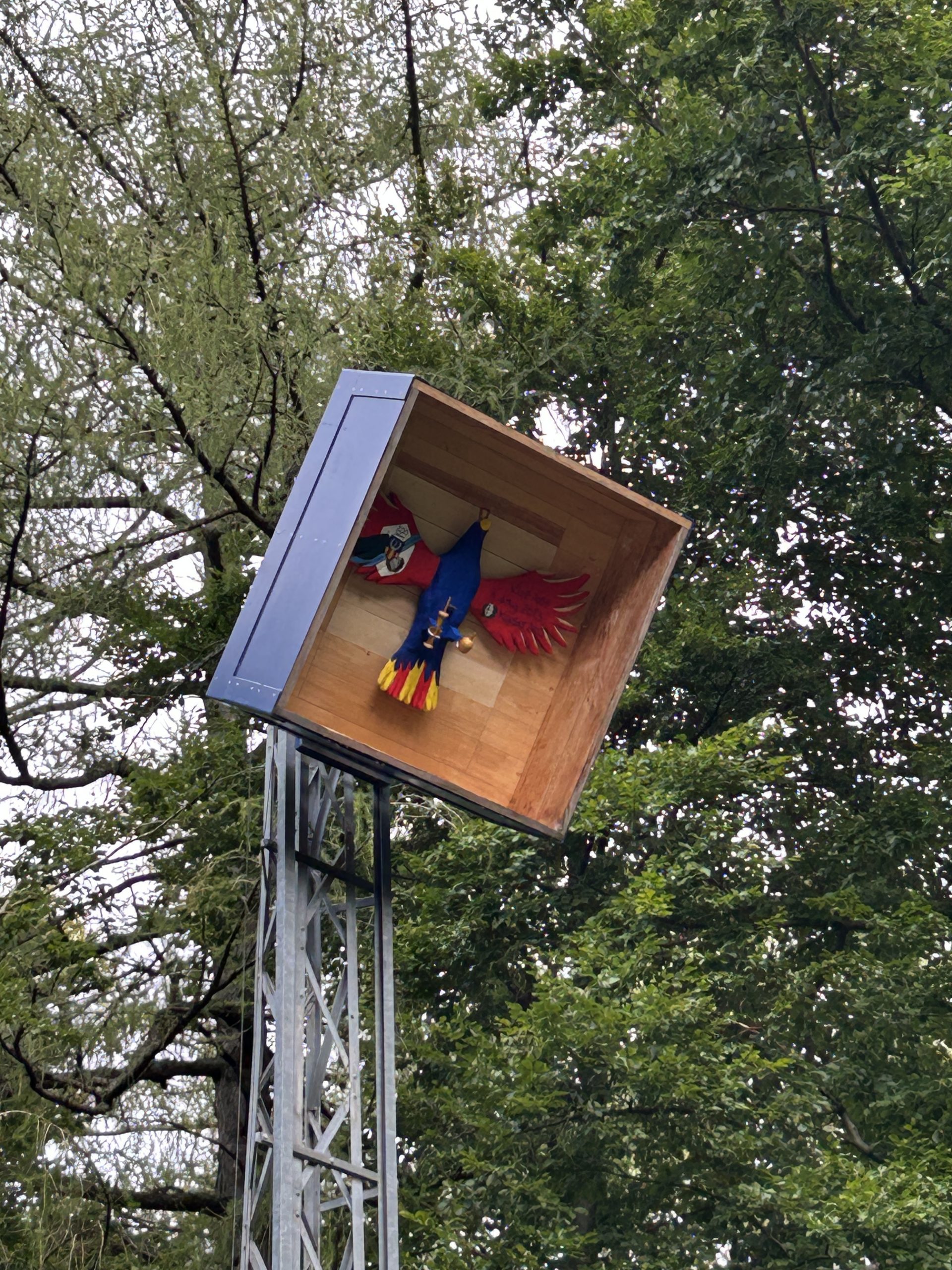 An der Vogelstange angekommen wurden die anwesenden ehemaligen Könige mit dem Ablauf des Kaiserschießens vertraut gemacht und rückten in der Reihenfolge der erlangten Königswürde dem Kaiservogel reihum zu Leibe. Allerdings erwies sich der hölzerne Aar als recht zäh, so dass erst nach vielen Runden sichtbare Einschussspuren zu erkennen waren. Gegen Ende waren noch acht Bewerber an den Gewehren und mit dem 370. Schuss gelang dem sowohl ältesten als auch dienstältesten König der goldene Treffer: Der Schützenkönig von 1960, der 90-jährige Helmut Dohle, errang unter Jubel der vielen Zuschauer verdient die Kaiserwürde und wurde wenig später vom 1. Brudermeister Tobias Cordes unter der Vogelstange proklamiert. Der scheidende Schützenkaiser Dominik Saßmannshausen erhielt als Erinnerung an seine 10-jährige Amtszeit einen Kaiserorden.