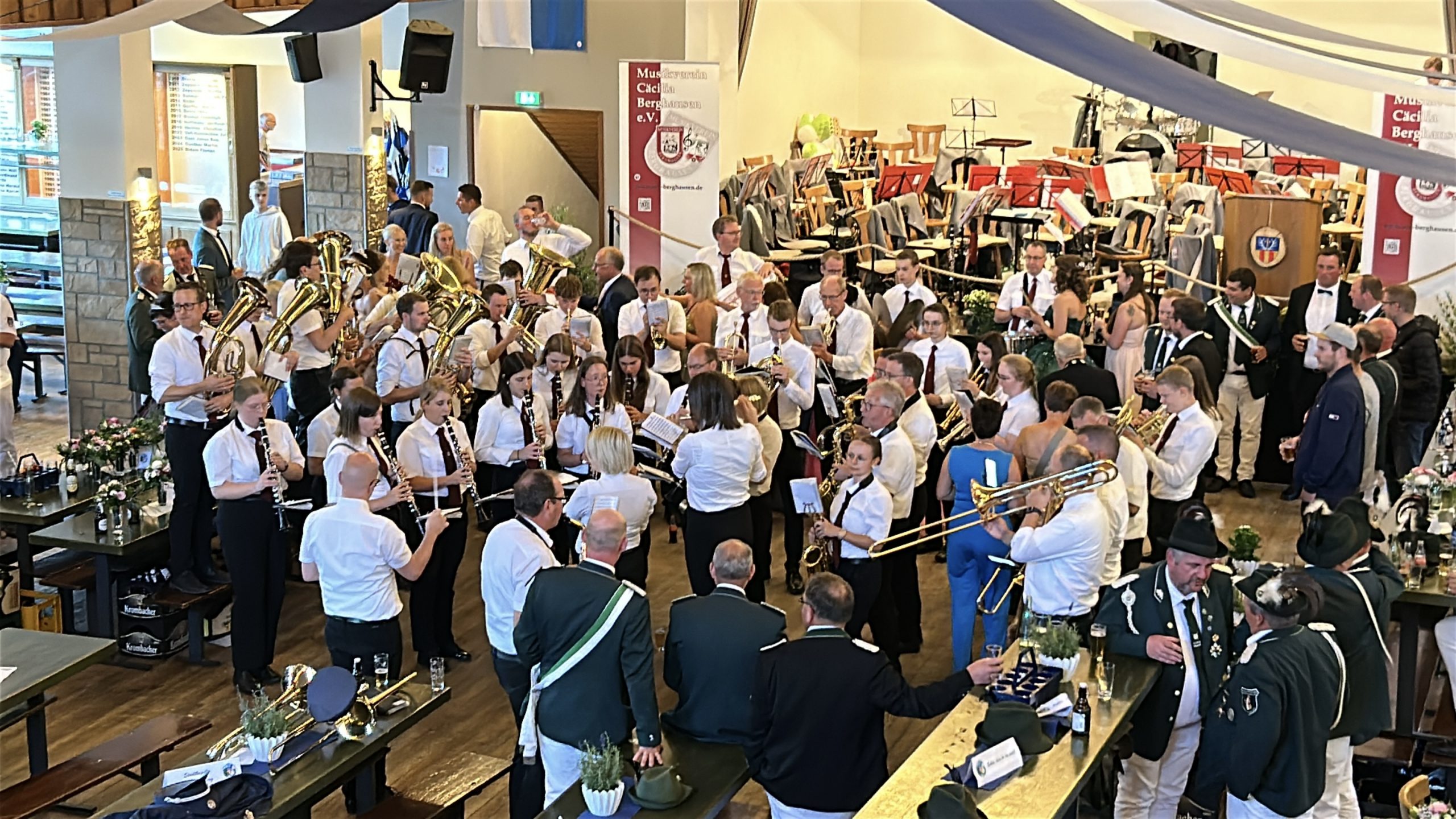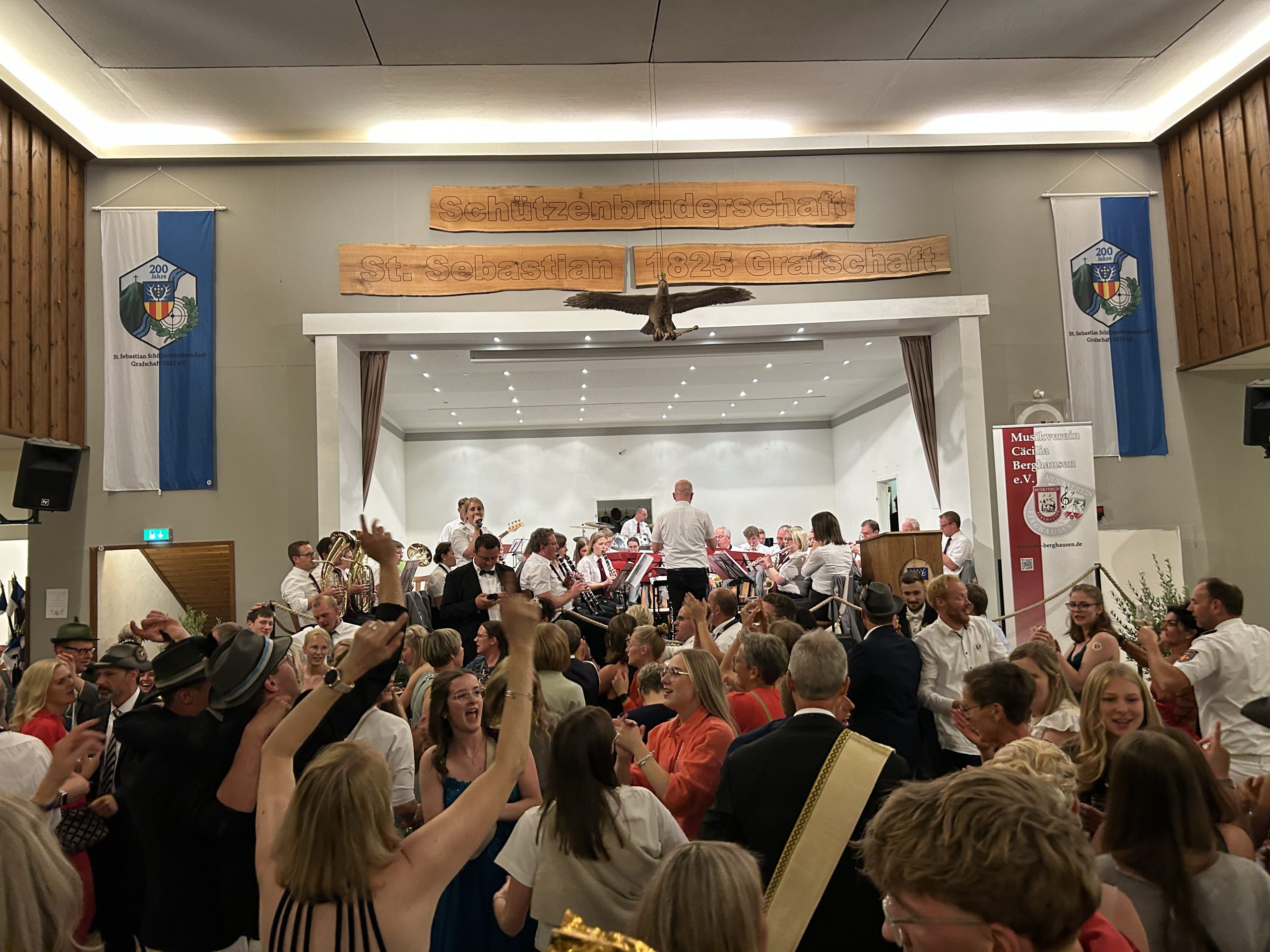 Anschließend ging es zurück in die Schützenhalle, wo viele Besucher zur Musik des Musikvereins Berghausen bei guter Stimmung den Kaiserball bis tief in die Nacht feierten.