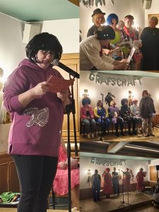Nach einer Schunkel- und Polonaisen-Pause tratschten Sabine Kerkhoff und Kathleen Schrichten als Waltraud und Mariechen über sich und übers Dorf. Der amerikanische Präsident Donald Trump (Karola Voss) besuchte uns im Superman- Kostüm und brachte Angela Merkel (Birte Stevermann) mit, die ihm einen Hollywood- Stern überreichte. Einen Stern gab auch es für alle Anwesenden auf der „Wall of Fame“.