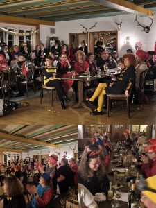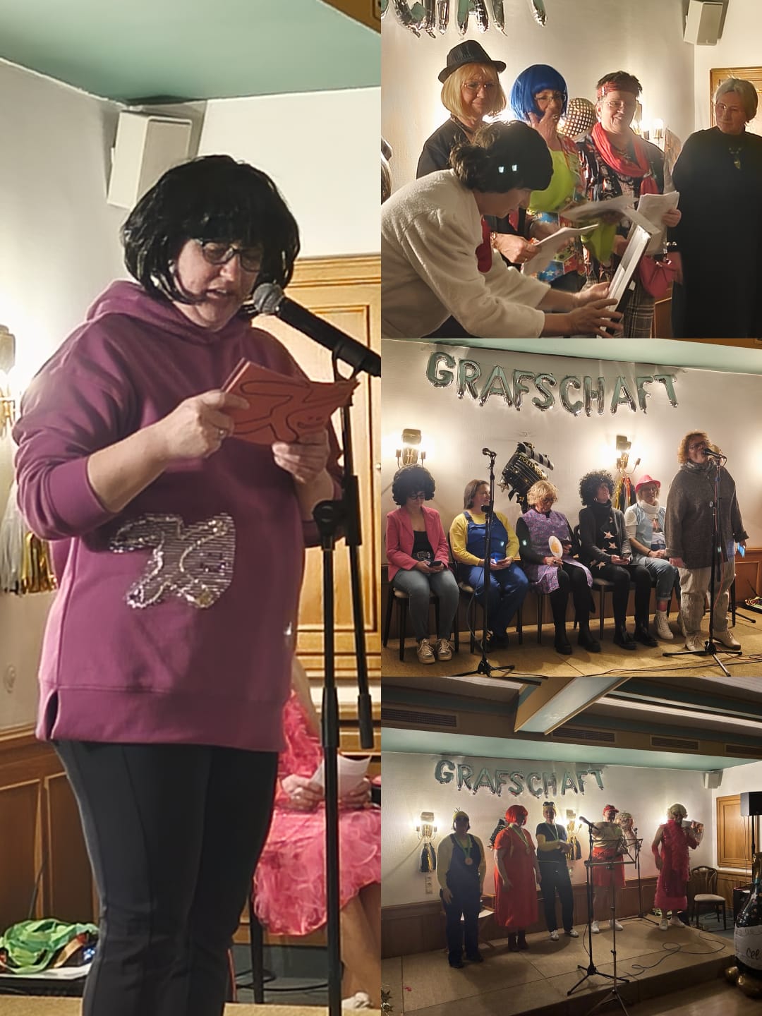 Daniela Vollmert erzählte als Ingrid Kühne schon zum dritten Mal aus dem Familienleben. Cornelia Henke, Stefanie Lutter, Daniela Vogt und Martina Willmes stellten Vergleiche an, z.B. „Was kann man beim Sex und im Kino sagen?“. Silvia Bernhardt, Ilona Heimes, Birte Stevermann und Gisela Vollmert hielten eine Büttenrede übers Alter. Abgerundet wurde der Auftritt von Karola Voss als Udo Jürgens am Klavier. Eine WhatsApp- Gruppe bestehend aus Hildegard Heimes, Sabine Kerkhoff, Martina Quast, Astrid Schütte, Kathleen Schrichten und Martina Willmes berichtet von den Schwierigkeiten der Planung des Kinderkarnevals sonntags in der Schützenhalle.