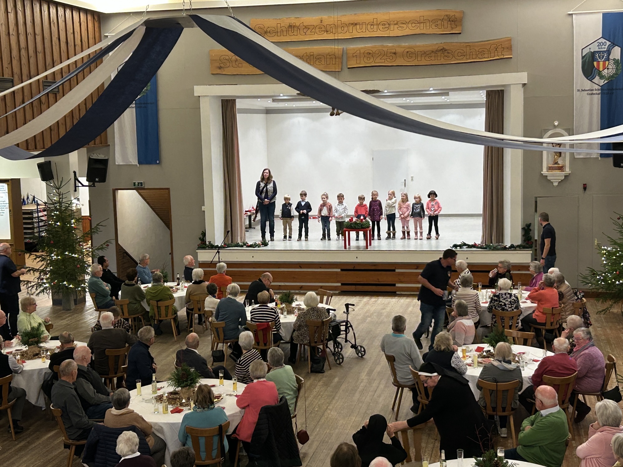 Fast schon traditionell trat die Vorschulgruppe des Grafschafter Kindergartens auf und hatte ein kleines Programm zum Mitsingen, Mitklatschen und Lachen mitgebracht, welches viel Applaus erntete. Der Adventskaffee war gleichzeitig die letzte Veranstaltung im Jubiläumsjahr und so ließ der Fotovortrag vom Jubiläumsschützenfest die ein oder andere schöne Erinnerung an das Festjahr wieder aufleben. Bei kühlen Getränken und frisch Gezapftem klang der Nachmittag schließlich gesellig aus.