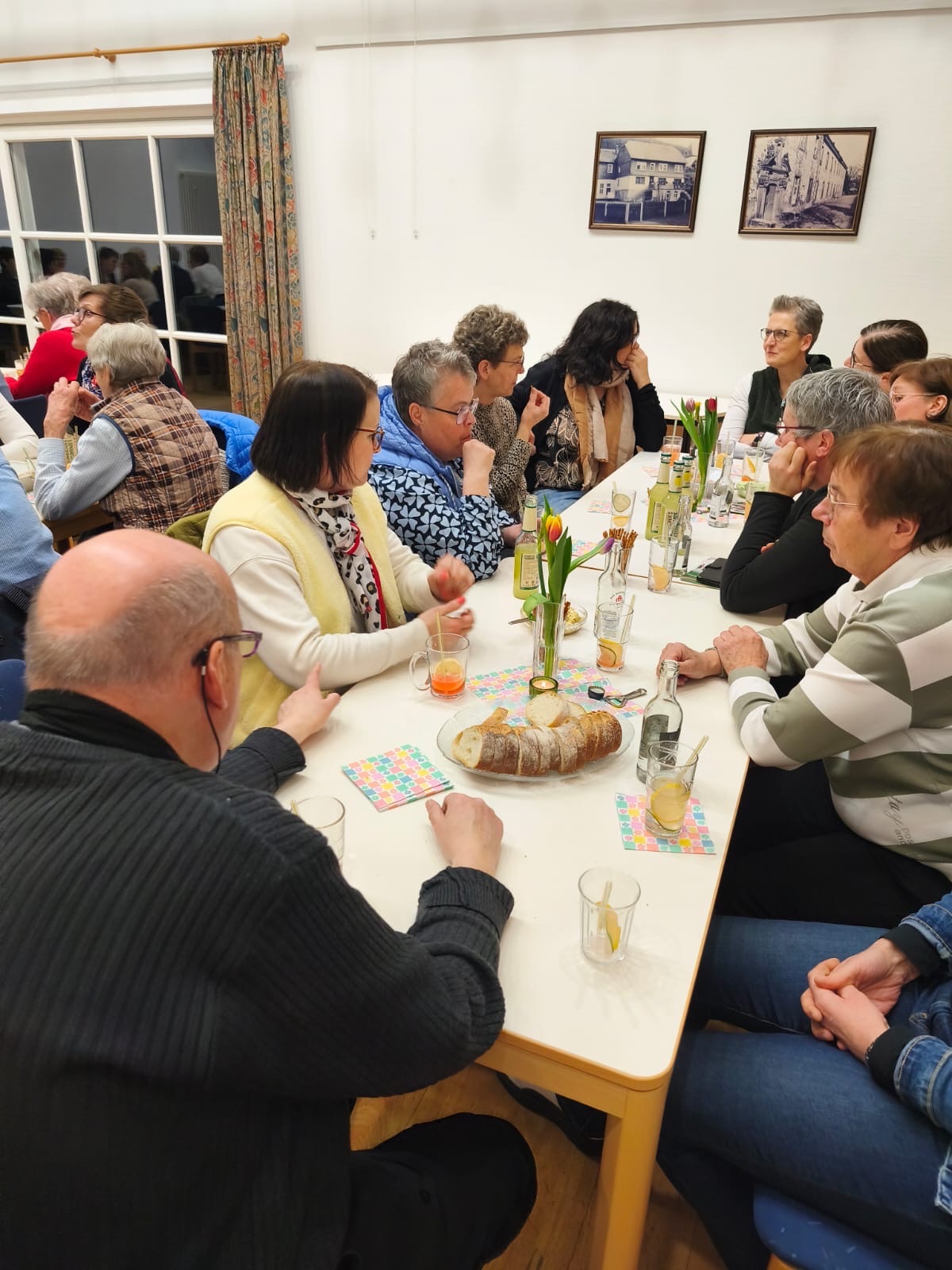 Anschließend ging es zu einem gemütlichen Beisammensein und einem regen Austausch über die Ortsgrenzen hinaus ins Pfarrheim. Mit Brot und verschiedenen Dipps und dem traditionellen nigerianischen Cocktail „Chapman“ ließen wir den Abend ausklingen.